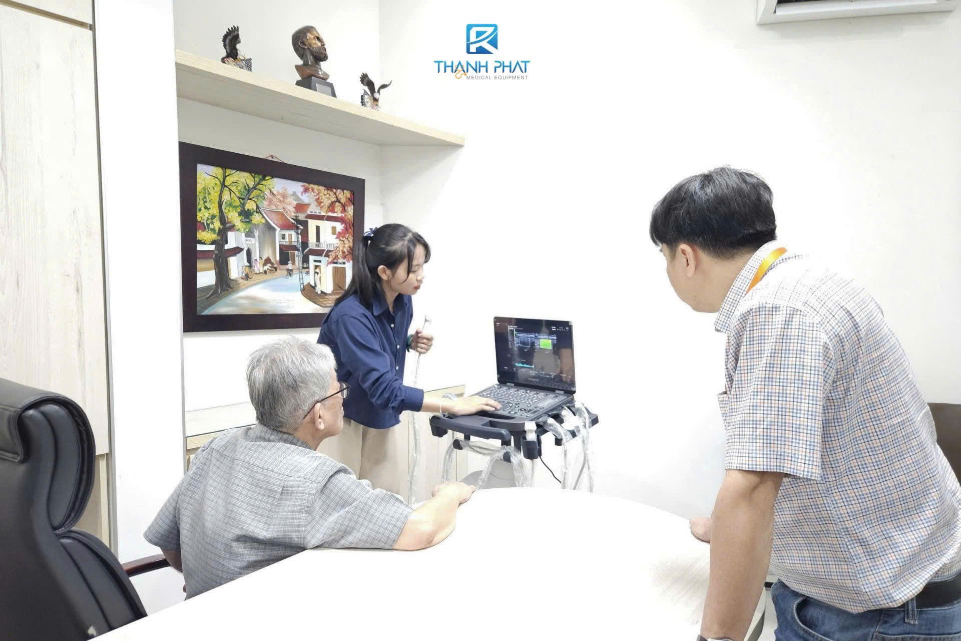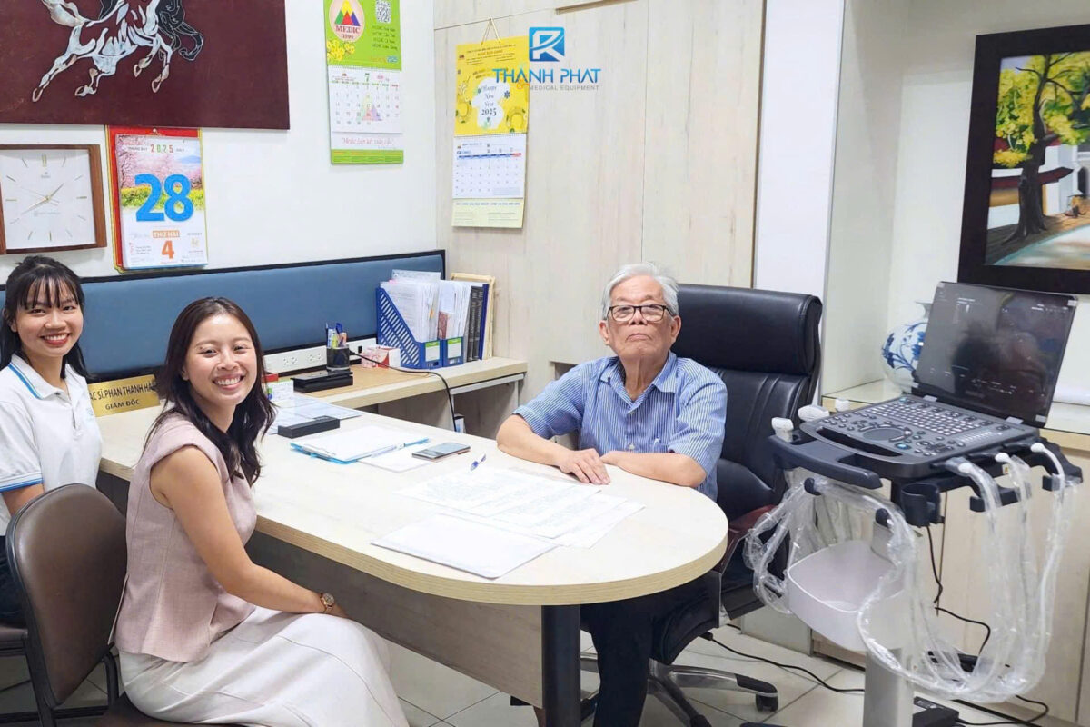 * Hình ảnh kỉ niệm Mindray – Thành Phát chụp cùng Bác sĩ Phan Thanh Hải bên máy siêu âm cao cấp Mindray Mx3, hiện tại đây chúng tôi cũng đang được phụ vụ máy siêu âm Midnray Consona N8: