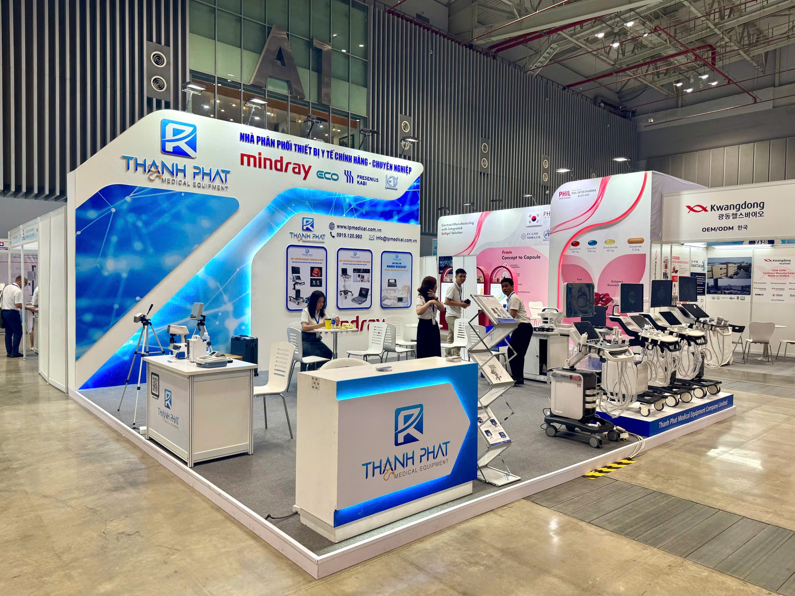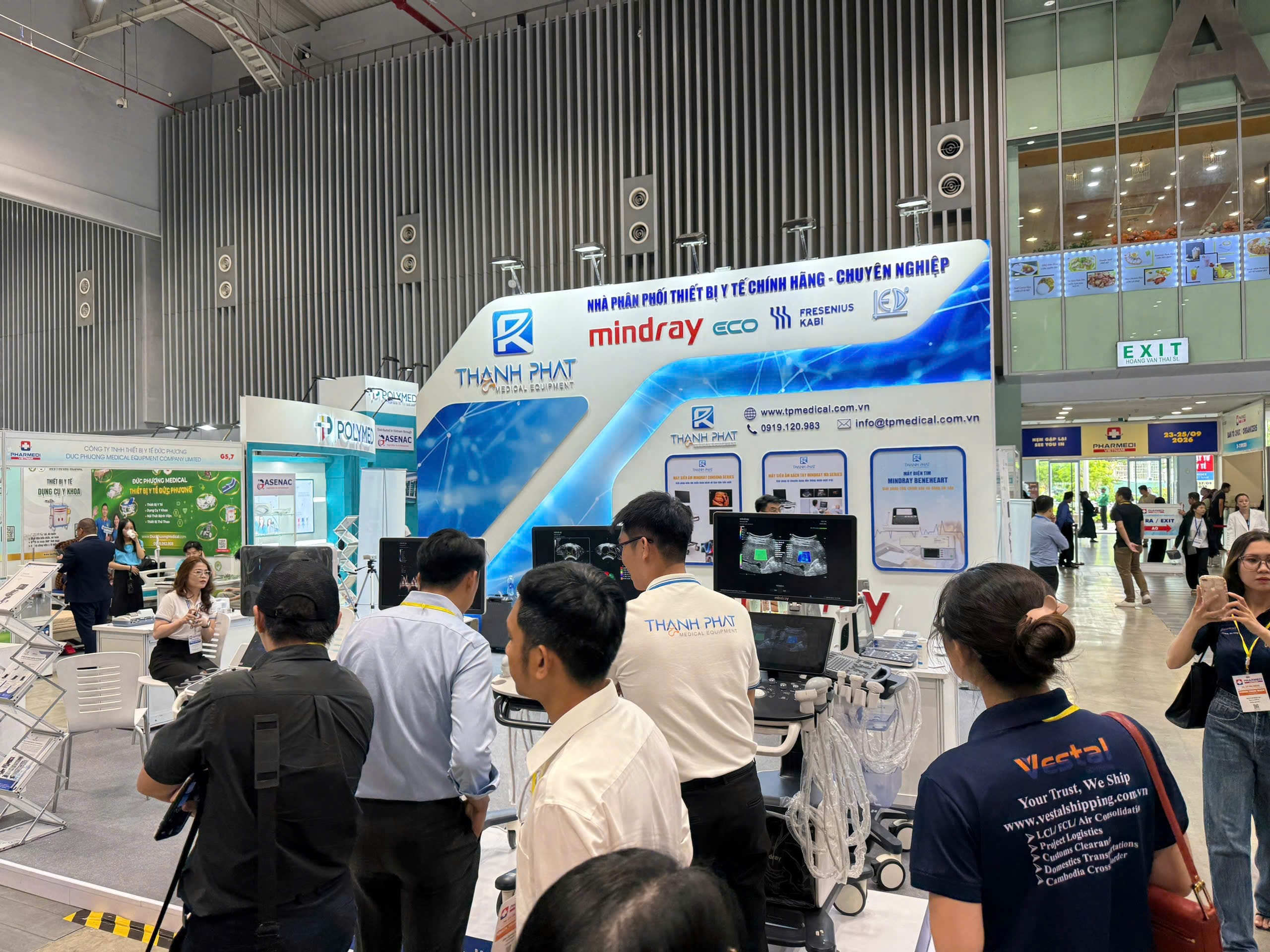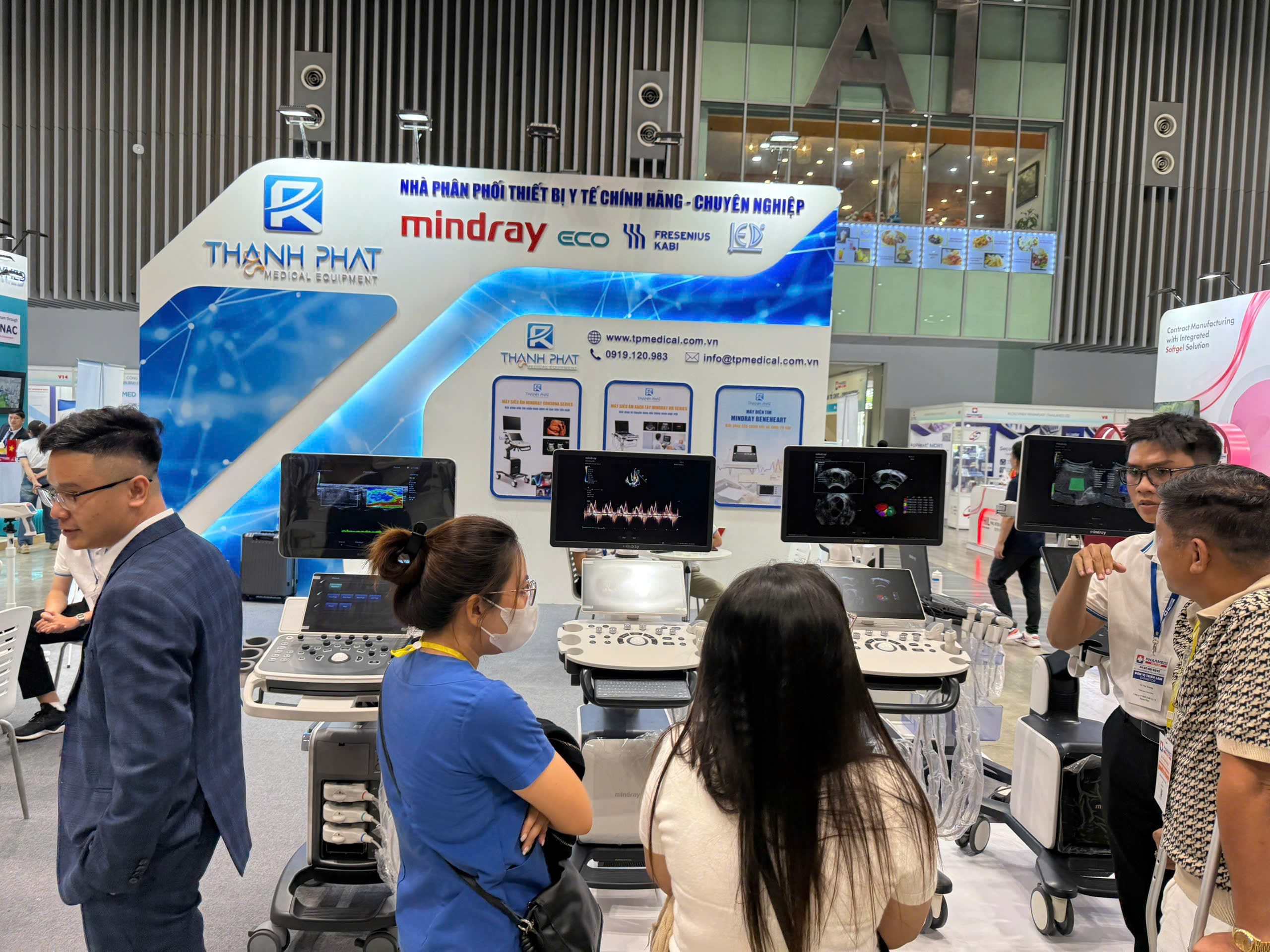 Ngày 24-27/09/2025 trong khuôn khổ Triển lãm Y dược Quốc tế được diễn ra tại trung tâm triển lãm SECC số 799 – Nguyễn Văn Linh – Quận 7 – TP Hồ Chí Minh Thành Phát Medical tự hào là 1 trong những đơn vị có gian hàng nổi bật nhất tại triển lãm với sản phẩm trưng bày chủ yếu là máy siêu âm của tập đoàn Mindray. Gian hàng của chúng tôi vinh dự được đón tiếp đoàn đại biểu cấp cao của Bộ Y tế và Đài truyền hình HTV7 TP Hồ Chí Minh ghé thăm, quay phim và đánh giá cao năng lực doanh nghiệp cũng như sản phẩm.